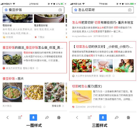 搜索結果中展現圖片,一方面可以讓搜索用戶有更好的瀏覽體驗,同時也可以為搜索結果帶來更多點擊。現在面對智能小程序推出搜索結果出圖權益,允許開發者推薦智能小程序在搜索結果中展示的圖片。搜索結果出圖的圖片樣式共分兩種,一圖樣式和三圖樣式,現階段一圖樣式已全量開放,三圖樣式內測逐漸開放中。