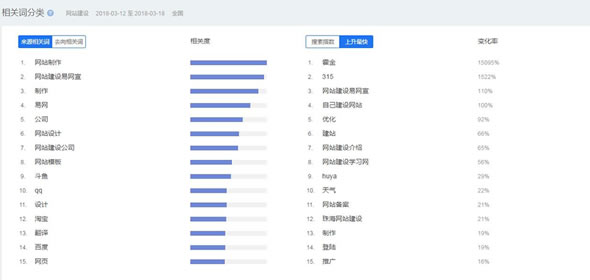 3.需要說明的是,我們可以在“網站建設”相關詞分類中,查看上升最快的關鍵詞,圖中可以看出最近和霍金、315相關度很大的。